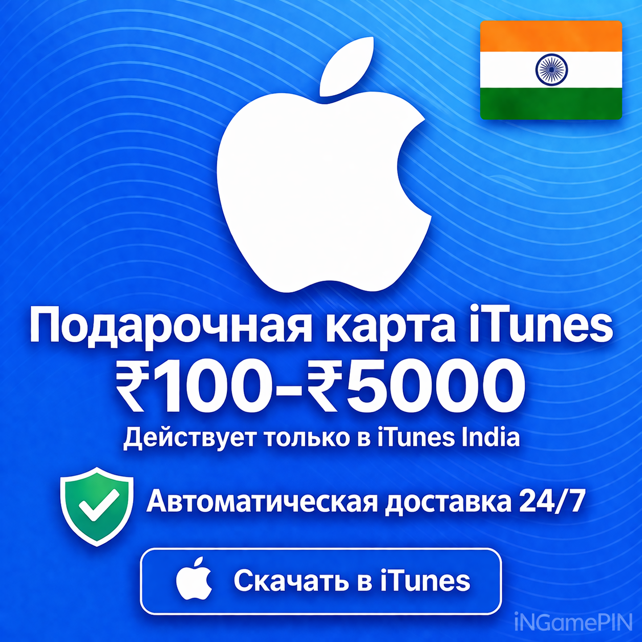 ▶ Название продукта: Подарочная карта Apple iTunes (100–5000 INR)