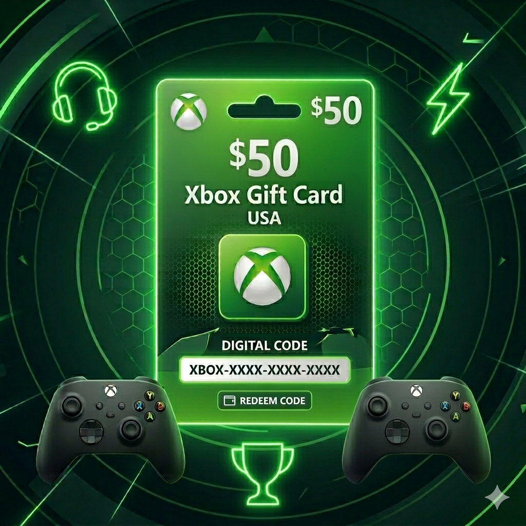 🎮 Мгновенно пополните свой аккаунт Xbox с помощью подарочной карты Xbox на 50 долларов.